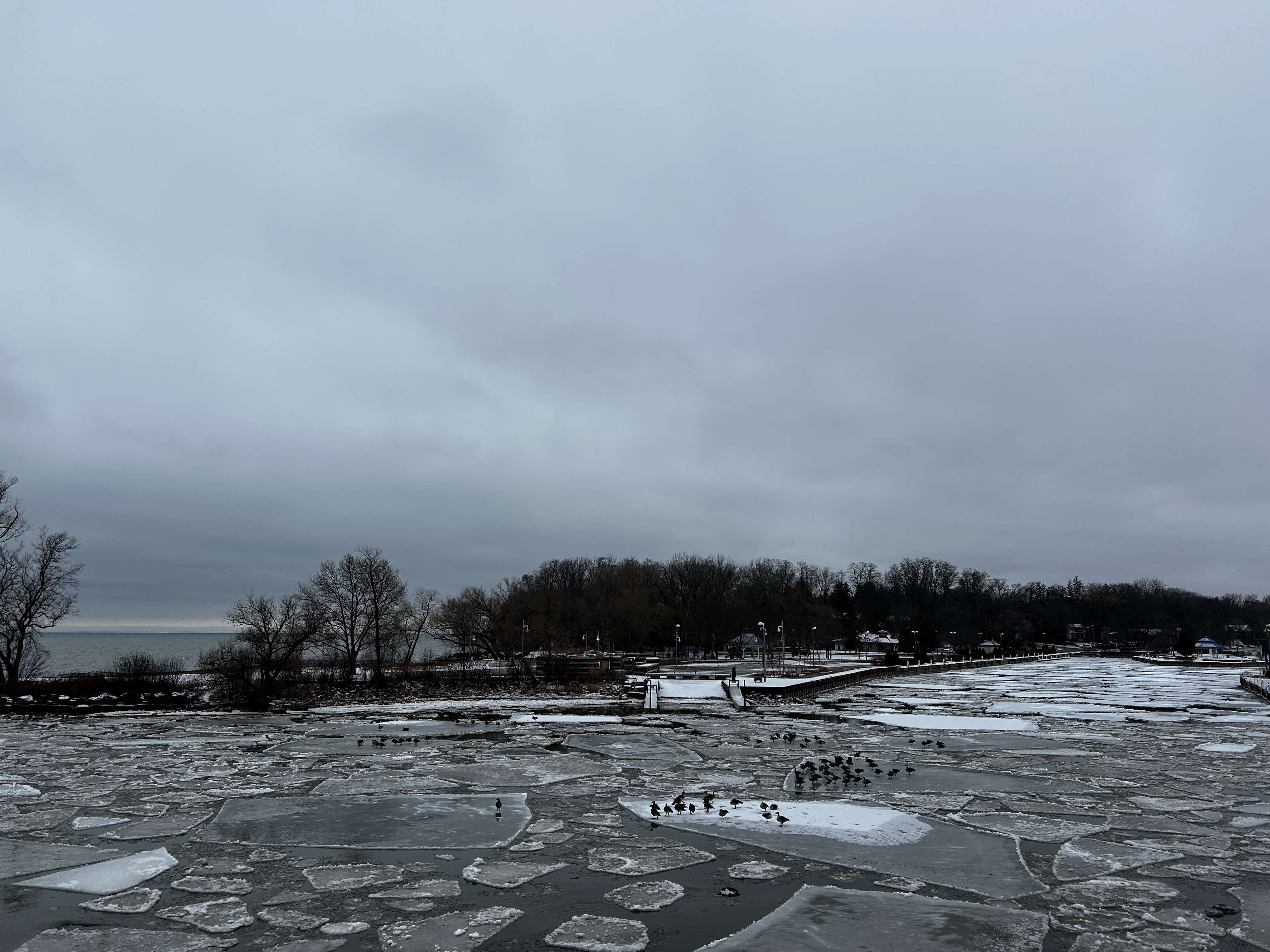 I watch birds over a lake,