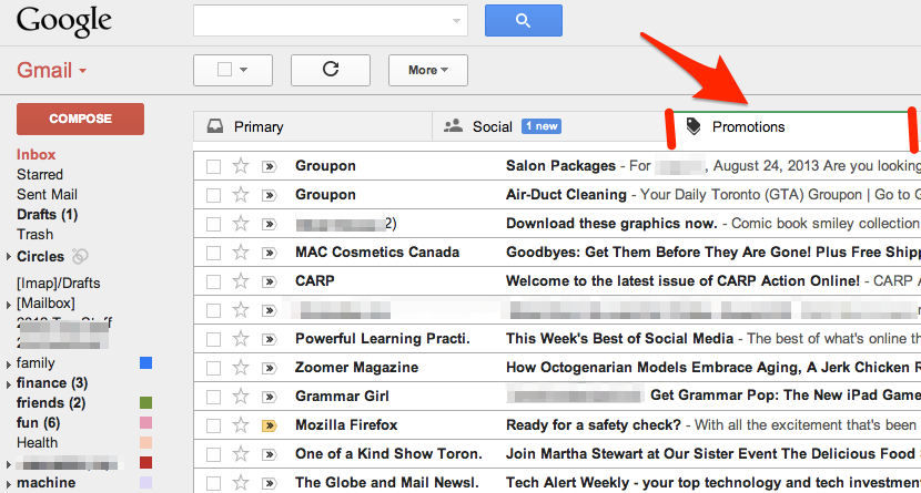 You may have noticed that I changed the order my tabs are in to suit my interests. I’m more interested in what comes in under my Social tab than what’s under my Promotions tab.