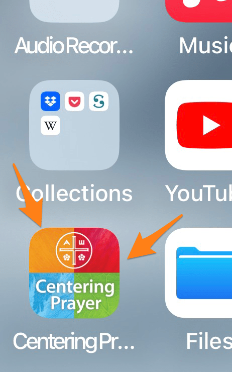 For your personal meditation practice, using your cell phone or tablet, I recommend you go to the App Store and download the Centering Prayer app, as pictured below. It is free, and allows you to chose the intro and exit sounds, and set the duration.
